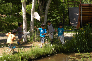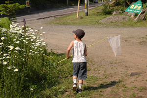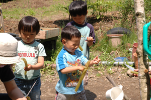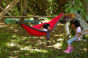 ハンモックで遊んだり、虫を見たり、雑草採ったり・・・。
