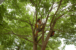 子供たちが帰った森でひとしきり遊ぶ宇くん。