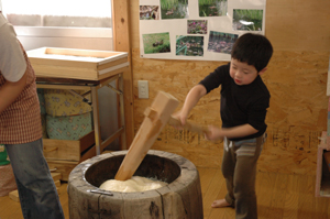 仕上げに子供たち一人一人が餅つきをしました。
