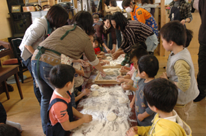 そして、皆で餅を丸めます。