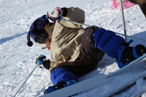 準備ができるまで外で雪遊び。