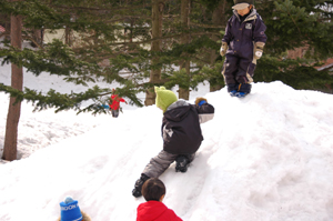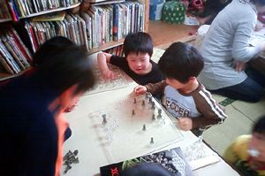 午後から曇りになり今度は中で遊ぶ子供たち。