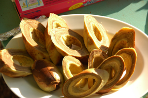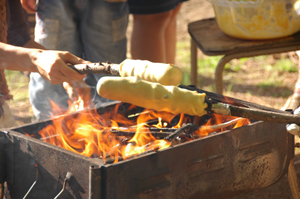 焚き火でバームクーヘンを焼きました。