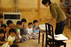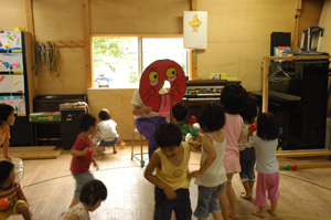 | 読み聞かせのコーナーでは 「おひさまパン」 の絵本を読んで聞かせ、 |